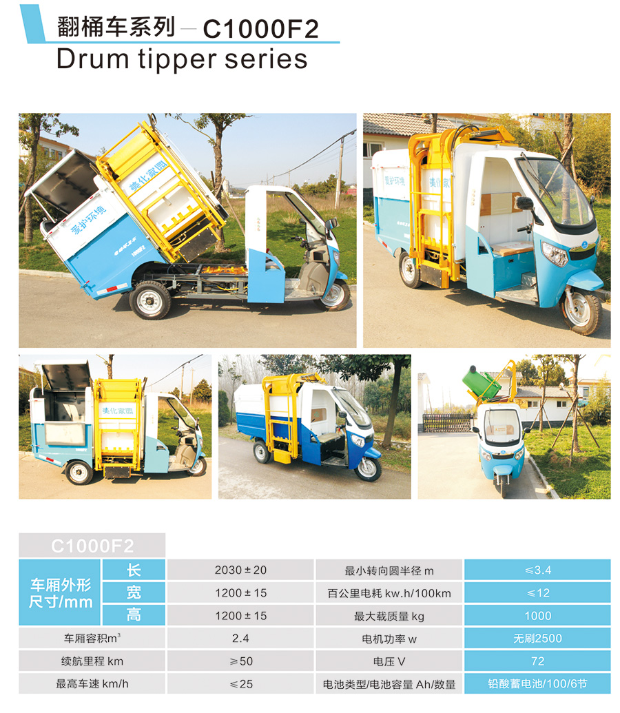 电动垃圾车之电动翻桶车C1000F2车型解析