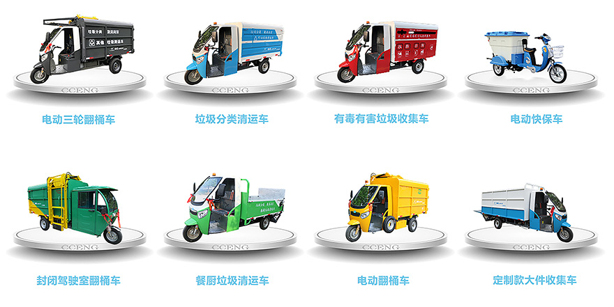 我司最新升级的产品有:电动三轮翻桶车,垃圾分类清运车,有毒有害垃圾收集车,电动快保车,电动翻桶车,餐厨垃圾清运车等产品。我们还为客户提供个性化定制产品!!