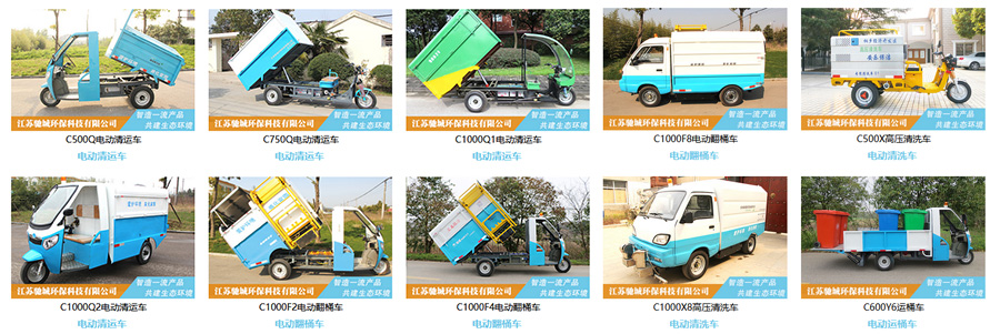 电动垃圾车、电动环卫车、电动保洁车、电动高压清洗车、电动挂桶车、电动运桶车、电动清运车、电动侧装车等多种系列产品